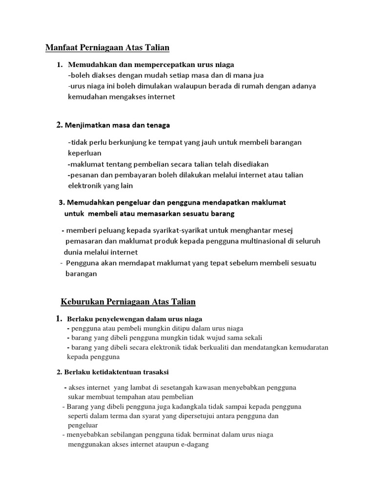 Karangan Kelebihan Dan Kelemahan Perniagaan Atas Talian Pdf